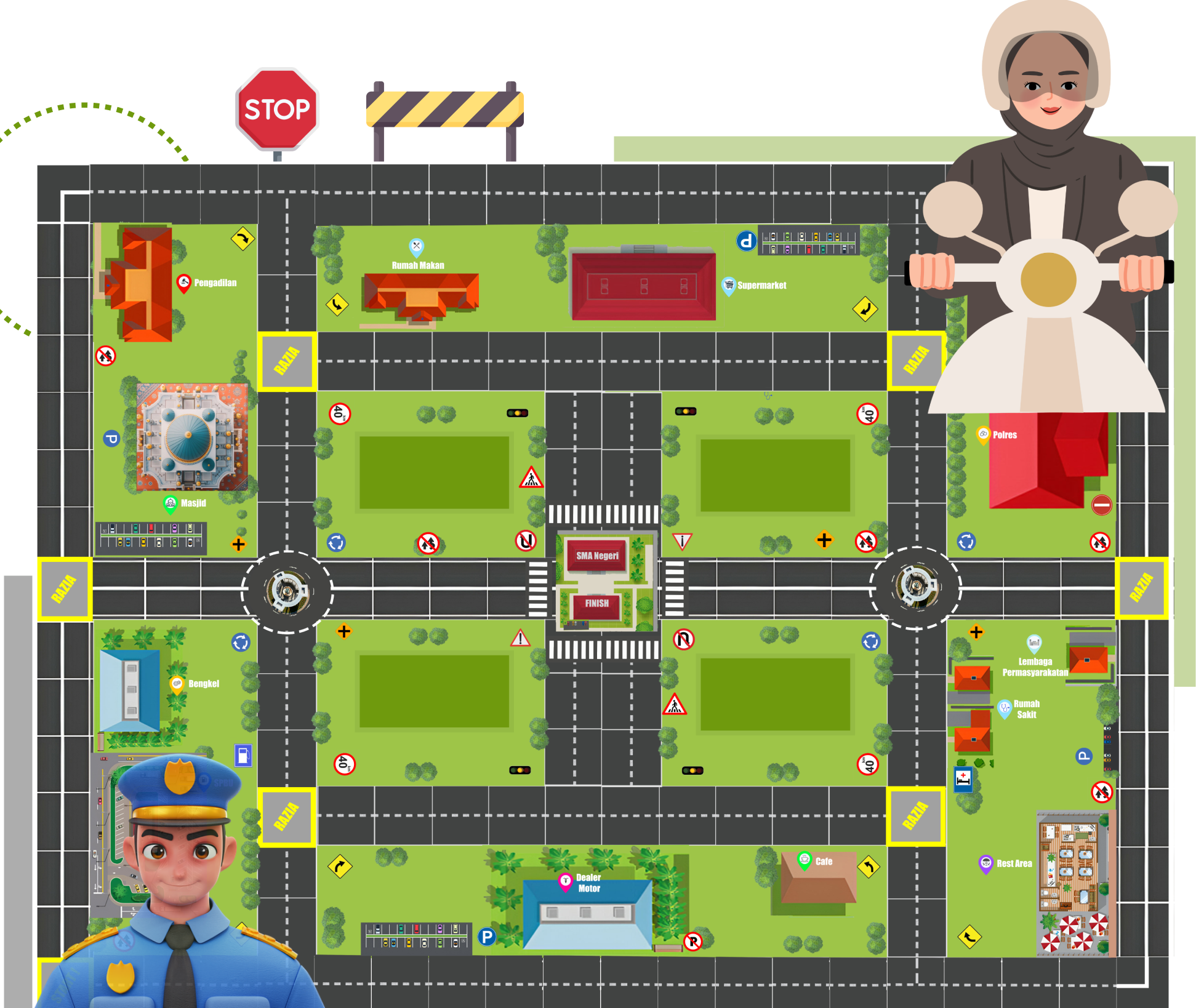 Hai, perkenalan namaku BORI... Tahukah kamu? Pengetahuan tentang prinsip safety riding memiliki urgenitas tinggi untuk diajarkan pada setiap individu khususnya remaja. Dikarenakan, pengetahuan tersebut dapat membantu meningkatkan keterampilan berkendara, meningkatkan keselamatan dalam berkendara serta mengurangi risiko kecelakaan lalu lintas. Pada kesempatan kali ini, kita akan bermain permainan BOGA SERI berbasis website sebagai sarana belajar tentang keselamatan berkendara dengan mudah, menyenangkan, menarik serta interaktif. Let's go.. !